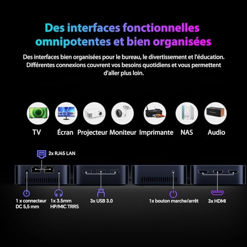 【Exquisite Design with Premium Intelligent RGB Illumination】Crafted with a sophisticated matte-finish exterior and accentuated by elegant linear detailing, the MP100 Mini PC features customizable dot-matrix RGB lighting that blends cutting-edge technology with refined aesthetics. With a simple press of the power button, toggle between illumination modes with the option to further customize four distinct lighting effects, plus brightness and speed, via the control center to match your mood and ambiance. More than just a tool, the Blackview MP100 mini desktop pc is a statement piece for your desk that extends your personal style.