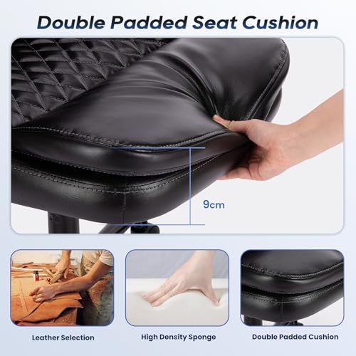 DIAMOND PATTERN: The bottom and middle of our wide office chair seat are crafted with a delicate diamond pattern and fine stitching. This design not only adds a unique visual effect to the office executive chair but also effectively prevents slipping and leather cracking. The design of diamond patterns and stitching not only adds a classic and elegant atmosphere to the office chair big and tall but also provides better support and comfort.