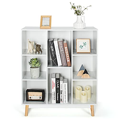 COSTWAY 8 Cube Storage Bookcase, Wooden Freestanding Bookshelf Side Cabinet, Home Living Room Bedroom Hallway Display Rack Cupboard Organiser Unit