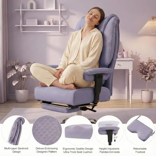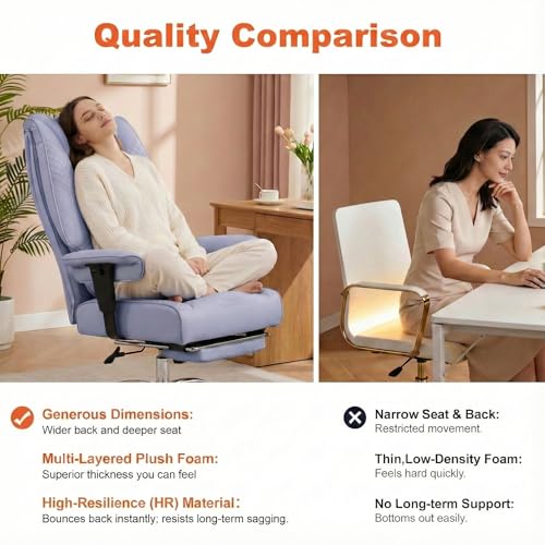 【Spacious Seat & Ultimate Comfort】The Plus Size Office Chair features a generous seat width and depth, providing ample space without feeling cramped, allowing you to sit cross-legged comfortably.The well-padded cushions with built-in spring pockets provide excellent support for long hours of sitting, while also promoting better posture and reducing strain.