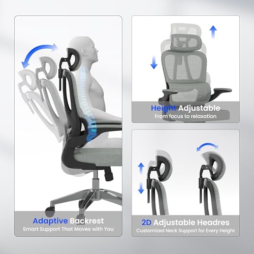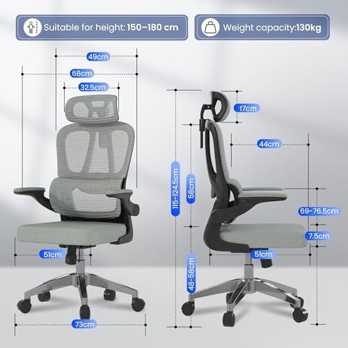 FLEXISPOT BIG MAX Ergonomic Office Chair 227KG, Height Adjustable Mesh Desk Chair with 90° Flip-up Armrest Lumbar Support, Executive Swivel Chair for Home and Office