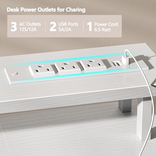 [Desk with Charging Station]: The computer desk includes built-in 3 power outlets and 2 USB charging ports for your phone, Bluetooth, headset, tablet, power bank, and gaming gear with fast charging, which provides great convenience to your life when you are working or playing games.