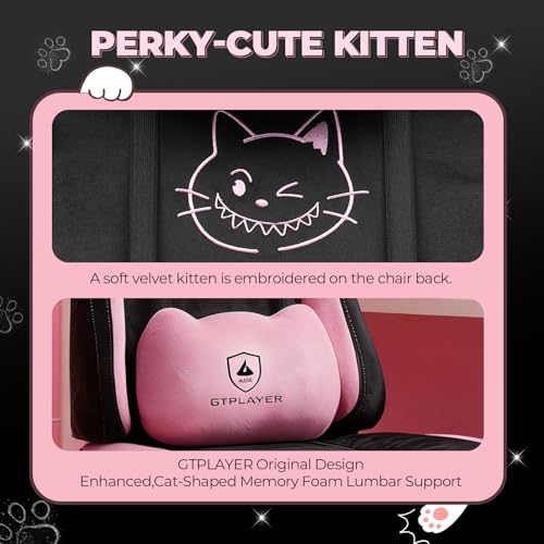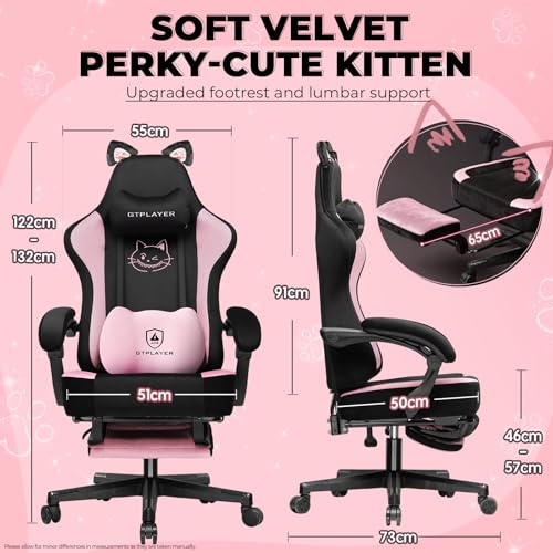 GTPLAYER Gaming Chair Fabric, High Back Computer Chairs with Footrest for Adults Ergonomic Lumbar Support Height Adjustable Swivel PC Chair with Cat Ears