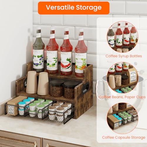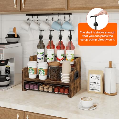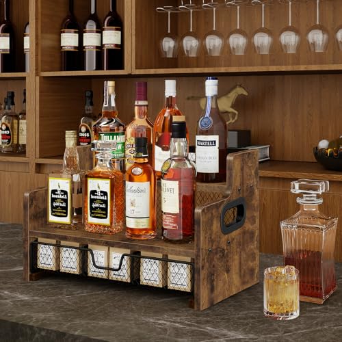 Homode Coffee Syrup Rack Organizer, Liquor Bottle Display Shelf, Countertop Liquor Wine Rack, Mini bar, Liquor Cabinet, Retro Bar Shelf Stand for Syrup, Wine, Dressing for Kitchen Coffee Station