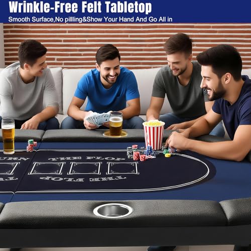 SMOOTH & DURABLE FELT SURFACE: Enjoy flawless gameplay on the premiumsmooth and wrinkle-free felt tabletop. Crafted from high-quality, wearresistant material, it ensures effortless card handling and chip movement foryour poker and Texas Hold’em sessions. This durable surface is designed toresist pilling, maintaining its pristine condition for countless Texas pokergames.
