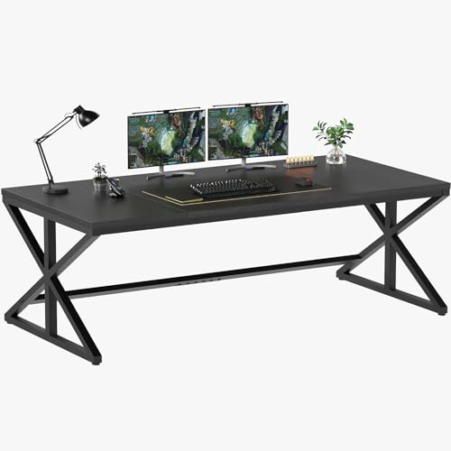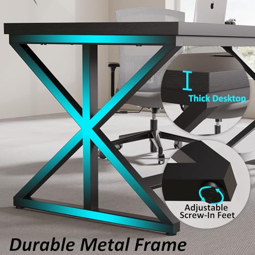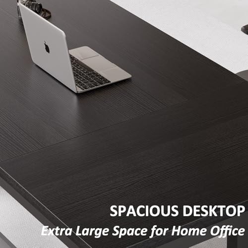 【Built for Stability】Crafted with thick tabletop and durable metal frame, this large office desk is made to last. Adjustable feet provide stability on uneven floors.