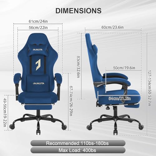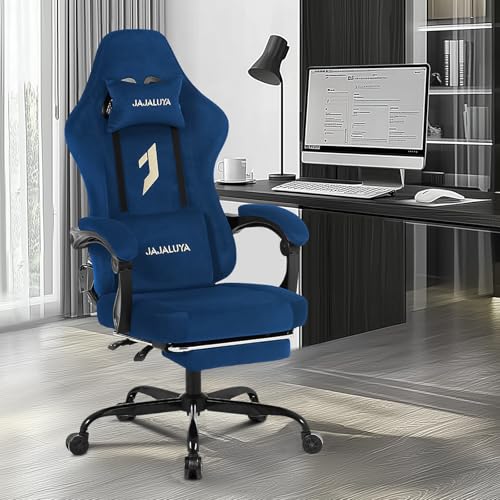 JAJALUYA Gaming Chair Ergonomic Computer Chair with Footrest, Gaming Chairs for Adults, Reclining Pc Gamer Chairs with Headrest and Lumbar Support,Suede material, Max load 350LBS