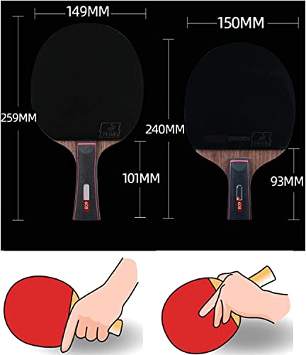Ping Pong Paddle, Table Tennis Racket, Flared Handle Table Tennis Equipment Advanced Carbon Fiber Ping Pong Racket for Beginners, Table Tennis Paddle with Wood Blade, Rubber Grips