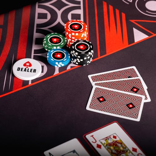 FLEXIBILITY AND PROFESSIONALISM: The absence of chip denominations empowers players to determine the stakes of each game, adding an element of surprise and strategy to the table. Furthermore, including a plastic PokerStars dealer button enhances the overall professionalism of poker nights, elevating the ambiance and making every game a memorable event.