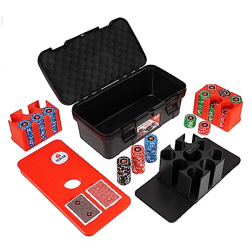 PORTABILITY AND CONVENIENCE COMBINED: Tailored for home gatherings and travel adventures, the PokerStars ‘On-The-Go poker case is thoughtfully designed using durable PP+ABS Plastic material, granting it resilience to withstand frequent use. With a weight of 6.3kg and compact dimensions measuring 36.4 x 19.3 x 15.3cm, carrying the set becomes effortless.