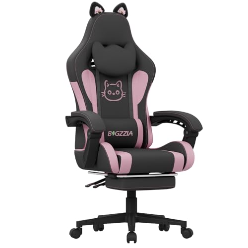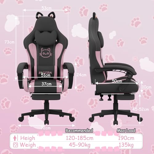 Racingreat Gaming Chair,Ergonomic Gaming Chair with Cat Ears for Girls Adults, Height Adjustable Reclining Computer Game Chair Comfortable with Headrest and Massage Lumbar Support