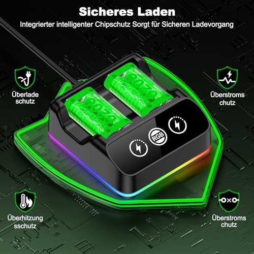 【Rechargeable Batteries & Charger】 4 x 6200mWh rechargeable batteries are specially designed for Xbox Series X|S/Xbox One/Xbox One S/Xbox One X/Xbox Elite controllers. The Xbox battery charging station is equipped with an on/off switch, clear LED indicators, non-slip pads and comes with an 80cm USB-C cable. With the Xbox 2000+ rechargeable battery, say goodbye to non-rechargeable batteries.
