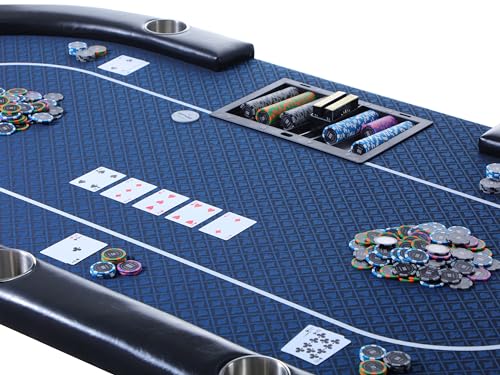 The stunning Speed Cloth playing surface has a smooth card slide action and is made from durable spill resistant materials. Underneath the speed cloth playing surface is a layer of medium-firm closed cell foam padding, for extra comfort and easy pick up of chips and cards.
