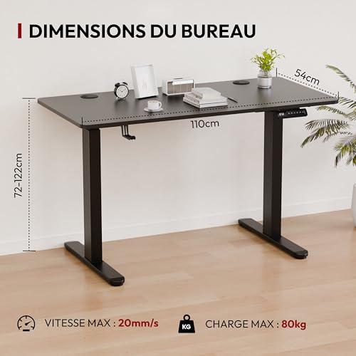 HEIGHT ADJUSTMENT WITH EASE – The height of this sit-stand desk can be easily adjusted between 73 cm and 122 cm. Utilizing an advanced electric adjustment mechanism, you can effortlessly set two common heights with just the push of a button, whether sitting or standing.