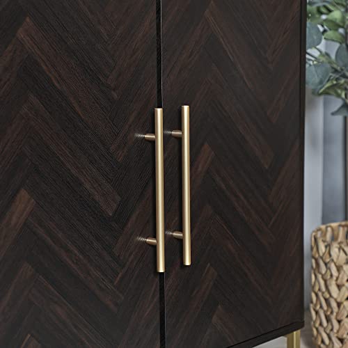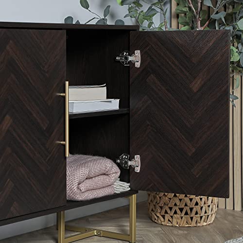 Spinningfield Dark Wood Sideboard – Storage Cabinet with Parquet Design Walnut Veneer – 2 Door Chevron Storage Unit w/Gold Handles & Legs – Buffet Cabinet For Living Room & Dining Room – York