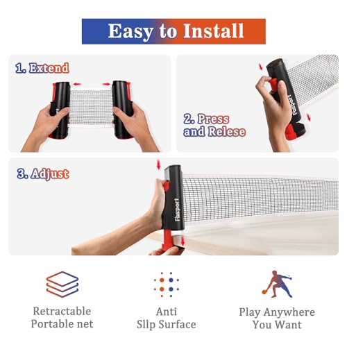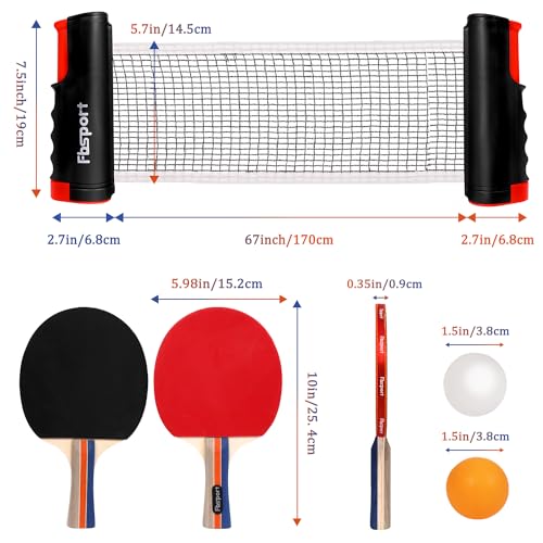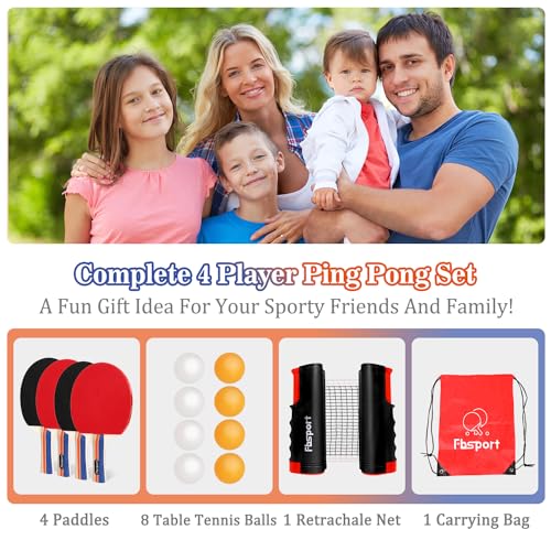 4-player table tennis set: this comprehensive table tennis package contains 4 professional rackets, 8 high-quality balls, a retractable net and a storage bag. With our table tennis set you will receive a complete table tennis sports equipment.