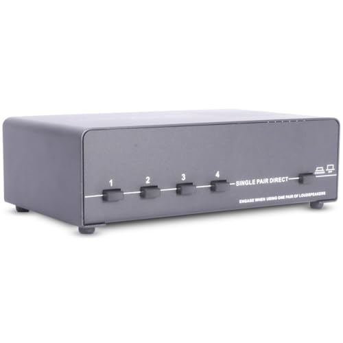 4-CHANNEL HIGH POWER STEREO SPEAKER SELECTOR: Designed for multi-room audio setups and home theaters, this 4-Channel High Power Stereo Speaker Selector distributes your stereo audio signal to up to 4 different speaker zones. It features a built-in impedance protection circuit to maintain a constant load of at least 5 ohms, protecting your amplifier from damage. Its compact design (8.5×4.9×2.6 inches) and sturdy build (1320g) make it a reliable and durable addition to your audio system.