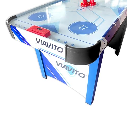 VIAVITO AH400 4ft Freestanding Air Hockey Table for Indoor Play; Portable Kids Family Home Arcade Style Table Hockey Game with High Gloss Playfield, Battery Powered Puck, Pushers & Rounded Corners