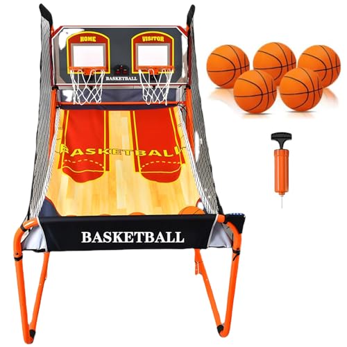 XCSCUK Basketball Arcade Game,Electronic Scoring Dual Shot Arcade Basketball,Folding Double Basketball Shooting Machine